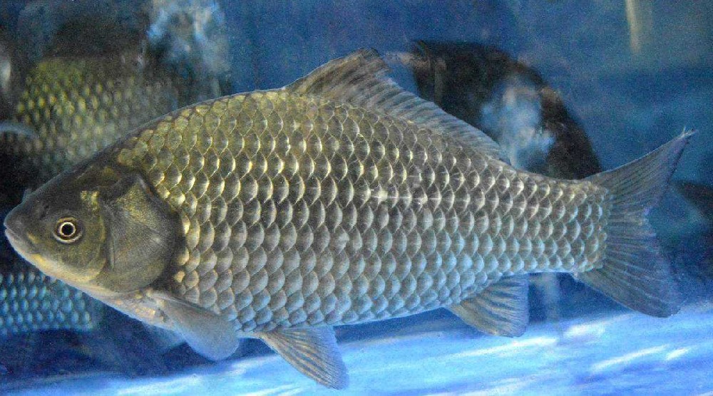 鯽魚(學名:Carassius auratus)是鯉科鯽屬動物,分布于中國除青藏高原外的江河、湖泊、池塘等水體中等,并引進世界各地的淡水水域。鯽魚主要是以植物為食的雜食性魚,喜群集而行,擇食而居,體態豐腴,水中穿梭游動的姿態優美。養殖的鯽魚一般背脊隆起,身體較寬,體色較淺,側面以銀白色的居多;而野生鯽魚身體紡錘型非常